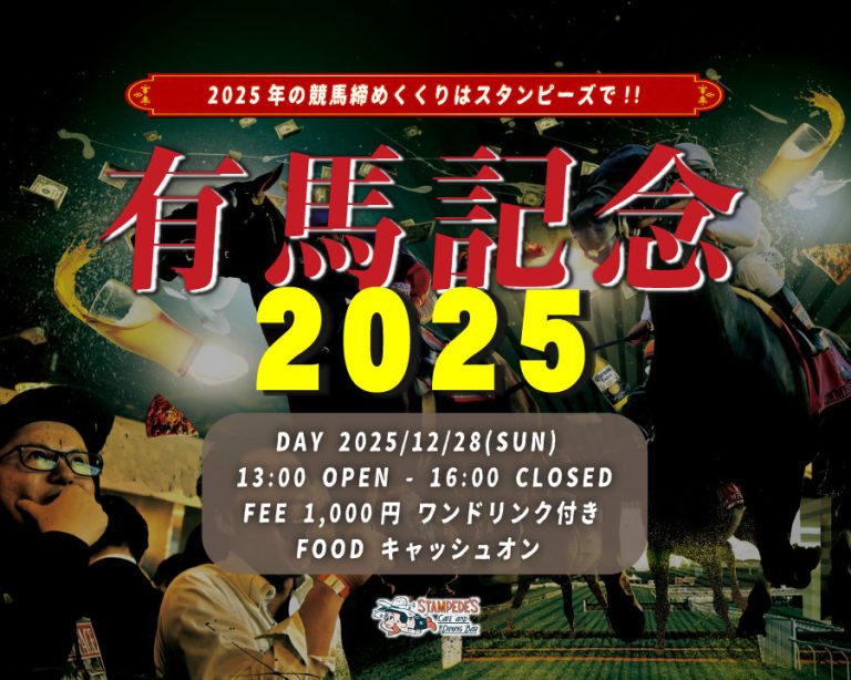 1年で一番盛り上がる競馬の祭典! 仲間とお酒を飲みながら、大液晶で観戦! 札幌の競馬好きの皆さん、有馬記念はスタンピーズ集合! イベント実施概要 タイムスケジュ […]